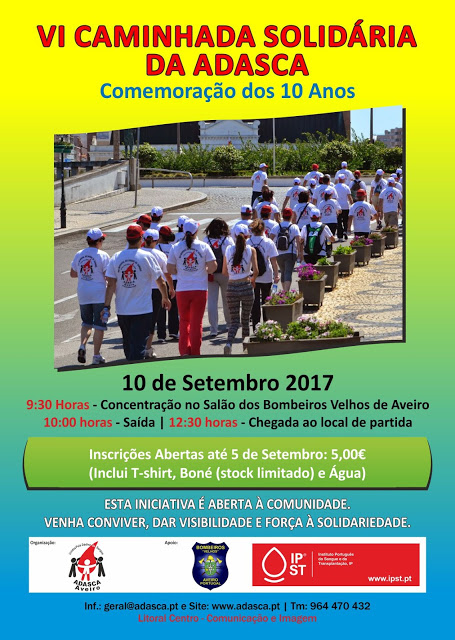 A ADASCA já está em fase de preparativos para a realização da VI Caminhada Solidária 2017 desta vez no âmbito da comemoração dos 10 anos de existência, no dia 10 de Setembro (domingo).
