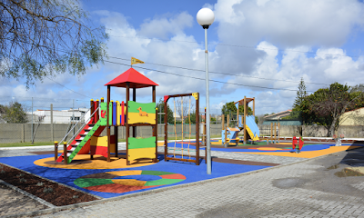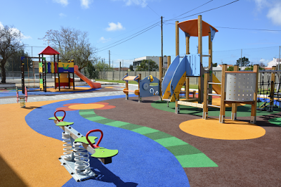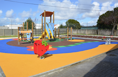 A área encontra-se agora mais segura, funcional e adequada para os fins a que se destina. Foi colocado um pavimento sintético de borracha, com jogos de cores e formas que se articulam entre si e ampliam a função lúdica do espaço.