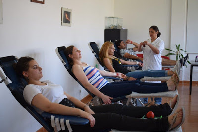 a doar sangue nada mais nada menos do que cinco jovens, um dos quais