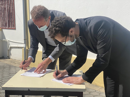 Na antiga Escola Primária de Nariz, Ribau Esteves e o Padre Pedro Barros assinaram durante a tarde o Contrato de Comodato que permitiu a cedência pela CMA, desde já, da Escola à Fábrica da Igreja Paroquial de Nariz, para o projeto social “Cantinho Solidário”.
