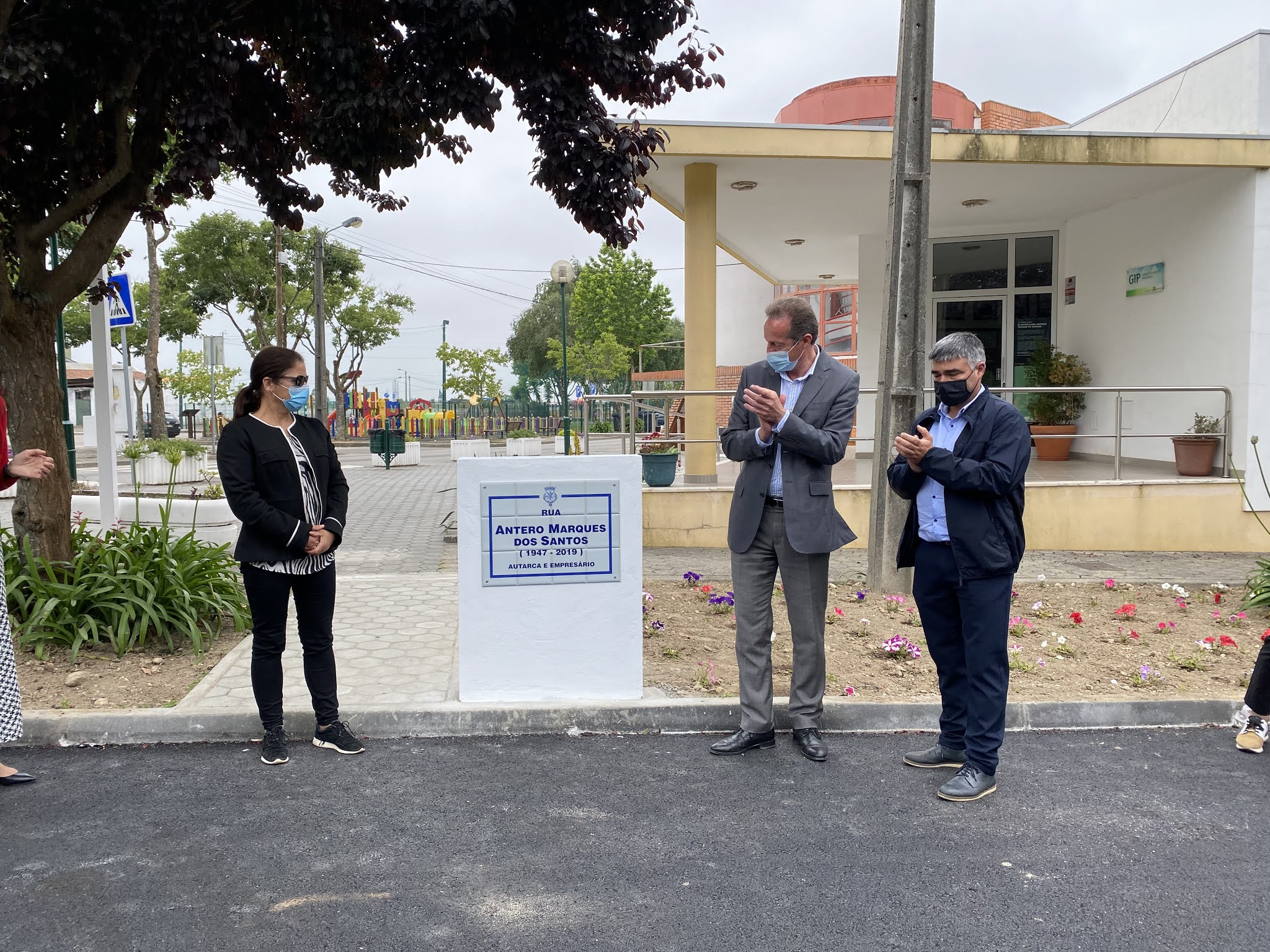 O descerramento da Placa Toponímica do antigo Presidente da Junta, Antero Santos, na via que liga a Rua da Igreja ao Parque de Merendas, em Nª Sra de Fátima, foi um dos momentos mais emotivos do dia, com a presença da família que agradeceu o gesto da Câmara Municipal e da Junta de Freguesia sublinhando a entrega do falecido Antero à causa pública: “a vida dele era a Junta”, explicou o filho Mário Santos, acompanhado pela Irmã e pela Viúva de Antero Santos.