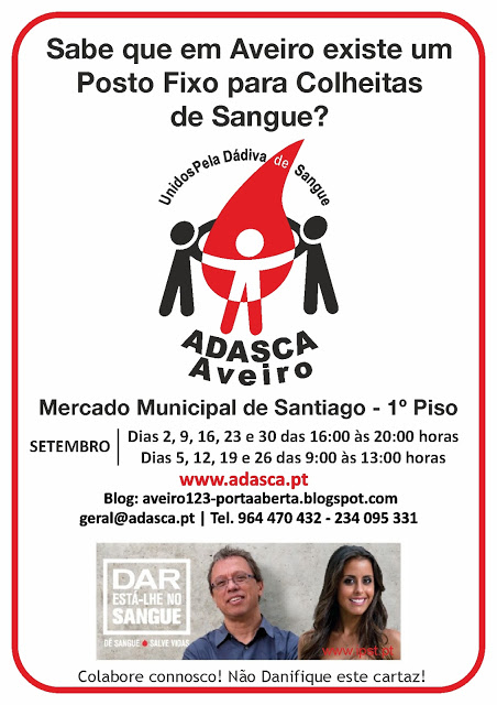 Colheita de Sangue Dia 16 de Setembro no Posto Fixo da ADASCA em Aveiro