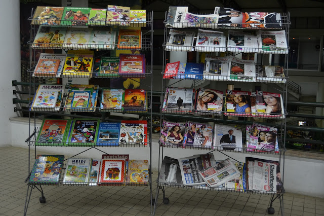 estão disponíveis em dois expositores com jornais e revistas, como ainda livros