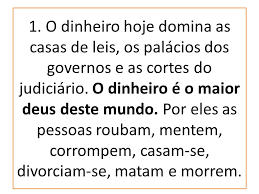 passagem, também é responsável por isso. O homem hoje transformou o dinheiro em