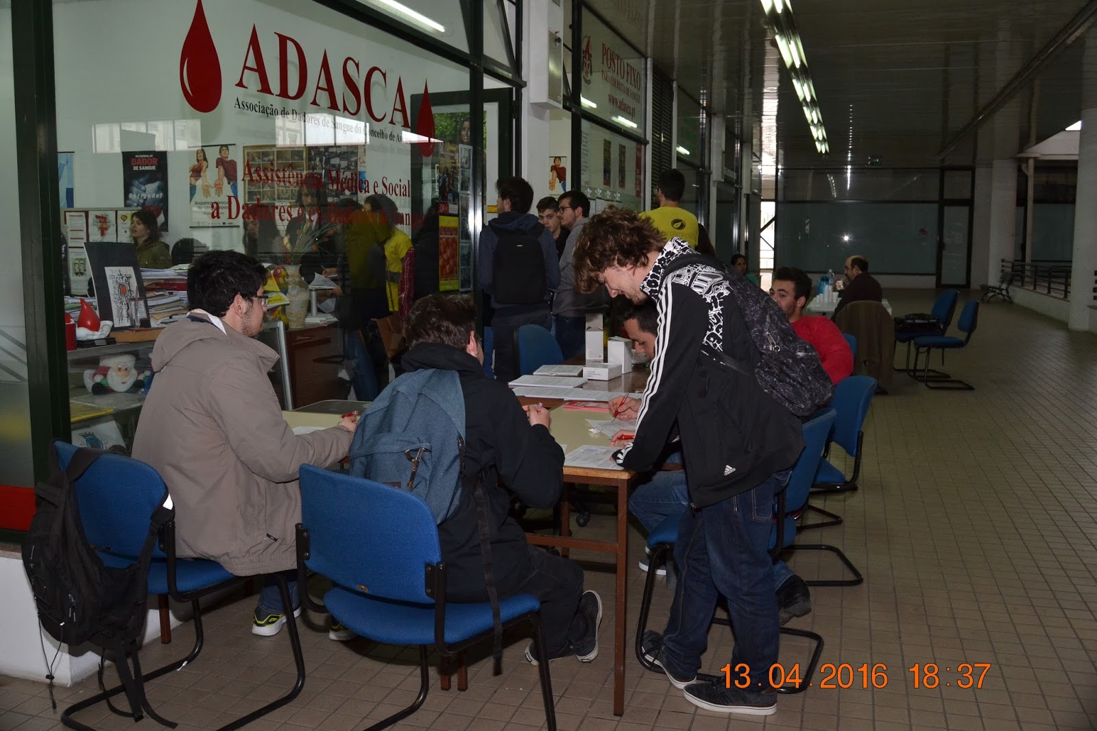 Fotorreportagem da Colheita de Sangue com alunos do curso ECT da UA no Dia 13 de Abril no Posto Fixo da ADASCA