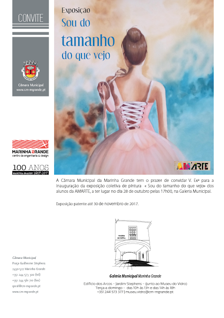 A Galeria Municipal, situada no Edifício dos Arcos, junto ao Jardim Stephens, na Marinha Grande, inaugura a exposição coletiva de pintura “Sou do tamanho do que vejo”, no dia 28 de outubro (sábado), pelas 17h00. A entrada é gratuita.