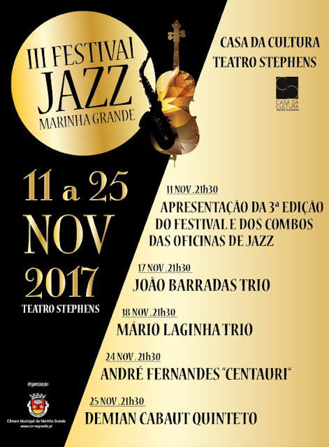 O 3º Festival de Jazz da Marinha Grande tem início no próximo sábado, 11 de novembro, pelas 21h30, na Casa da Cultura Teatro Stephens, com a apresentação dos Combos resultantes das oficinas de jazz e cuja entrada é gratuita. A iniciativa é organizada pela Câmara Municipal e decorre até 25 de novembro.