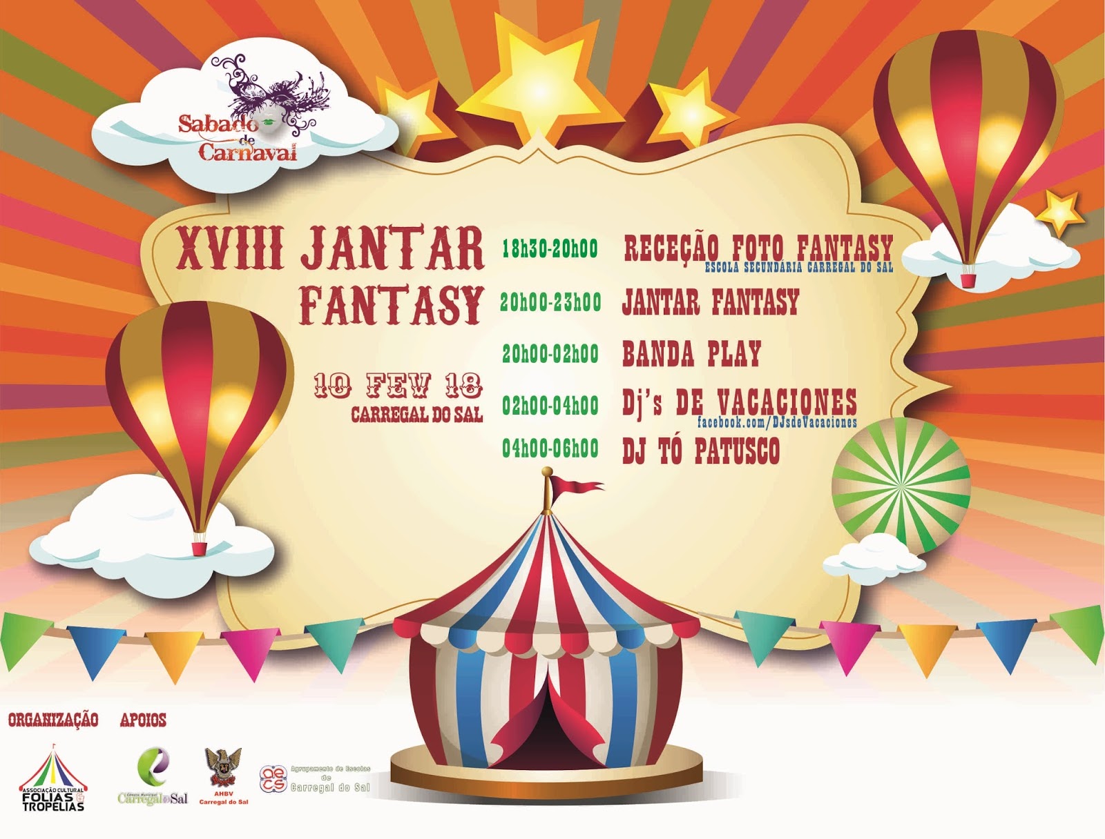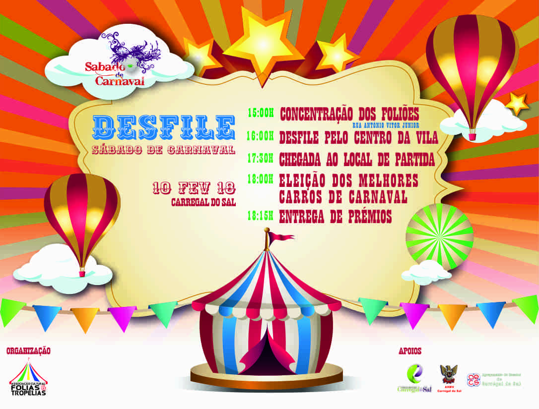 Segue-se a entrega de prémios aos melhores Carros de Carnaval e o Jantar Fantasy na escola Secundária de Carregal do Sal. A animação está a cargo da Banda Play, seguida dos Dj’s De Vacaciones, terminando com Dj Tó Patusco.