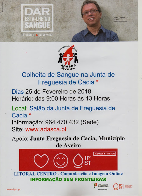 do Mapa de Sessões de Colheitas de Sangue a realizar no ano de 2018