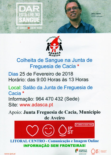 Estão criadas as condições para os aveirenses aderirem à dádiva, como ainda os que vivem nos arredores de Aveiro. As oportunidades ajustam-se, assim haja vontade.