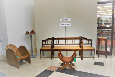 Dos trabalhos em exposição é possível encontrar móveis e peças executados em madeira, trabalhos em serralharia, estofaria e encadernação, pinturas em cerâmica, peças de mobiliário com empalhamento restaurado, entre outros.