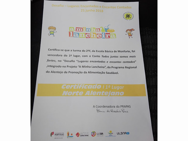 As bolas de basquete, futebol e andebol tinham sido entregues na cerimónia do dia 21 de Junho de 2018, em Évora, na qual todos os autores do conto estiveram presentes, e foram agora entregues como forma de incentivar à prática do exercício físico nos intervalos. Decorrente desta entrega a Escola do 1º ciclo de Monforte, foi também presenteada, pela direção da escola, com uma tabela de basquete colocada no alpendre que permite jogar mesmo em dias de chuva.