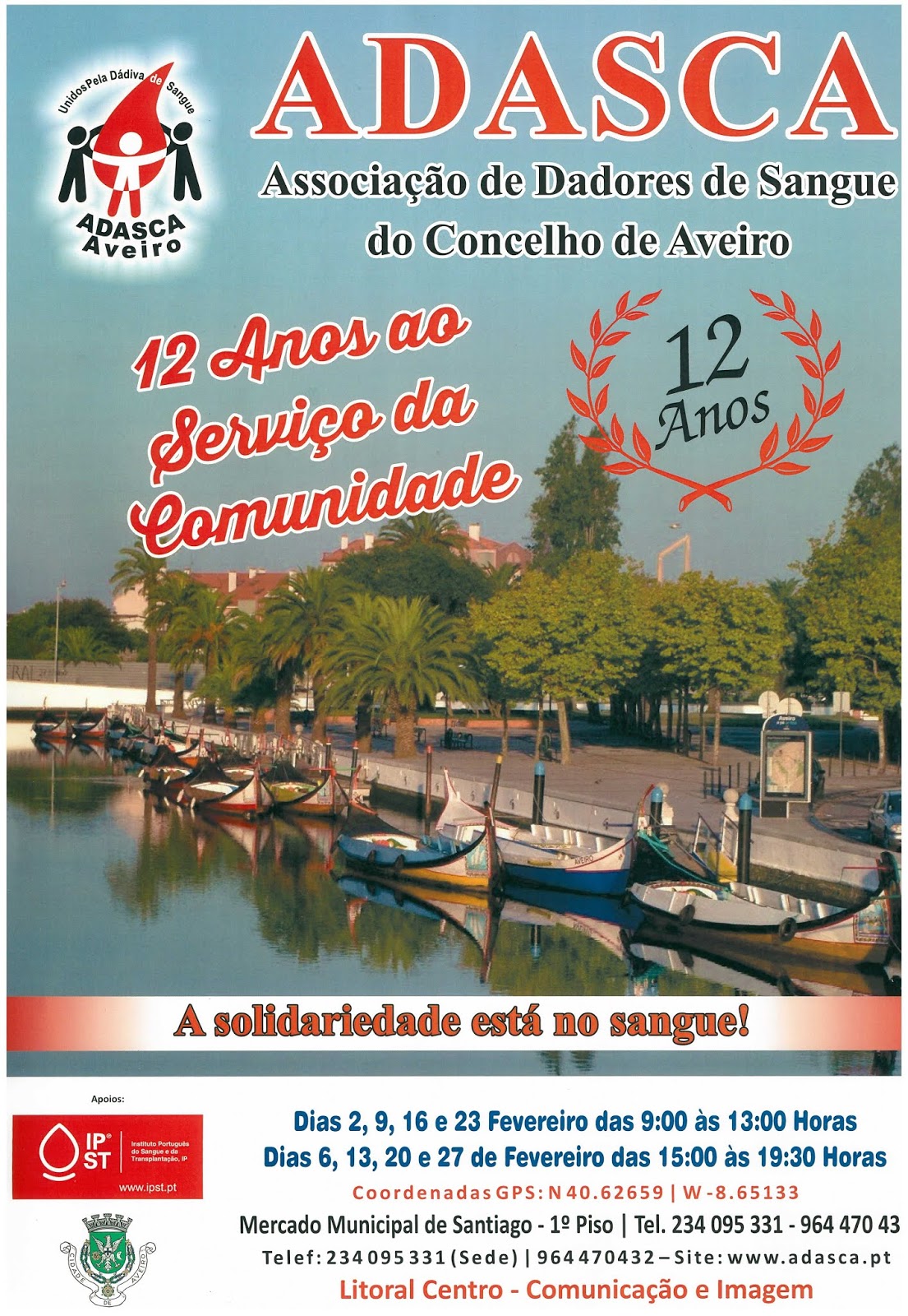 Colheita de sangue dia 6 de Janeiro das 15 horas às 19:30 horas no Posto Fixo da ADASCA em Aveiro