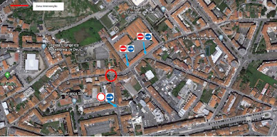 Desta forma, está interdita a circulação automóvel, no cruzamento da Rua do Carmo e a Rua Eng. Oudinot. Todos os acessos a esta zona estarão cortados, com o desvio (devidamente sinalizado) a ser realizado pelas ruas adjacentes, nomeadamente através da Rua Eng. Von Haff e Rua de Sá (conforme mapa em anexo).