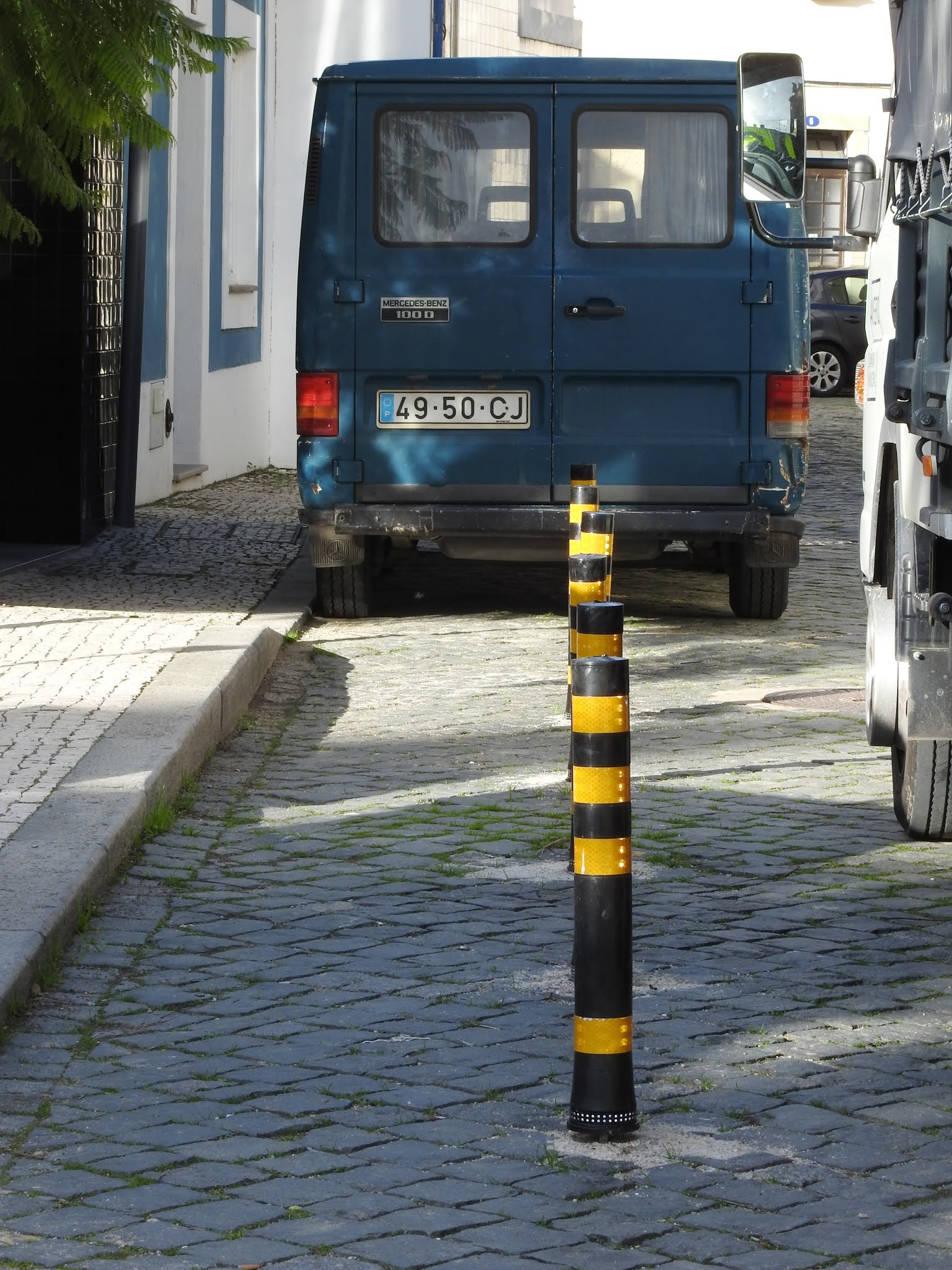 Não deixa de ser curioso, até para quem pediu a afixação pilaretes. Como não tem espaço para estacionar as suas viaturas em frente do seu prédio, vai estacioná-las no espaço dos outros moradores.