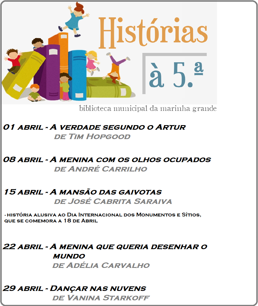 A Biblioteca Municipal da Marinha Grande vai apresentar online a leitura de cinco livros infantis, à quinta-feira, durante o mês de abril, dando continuidade a uma iniciativa realizada desde o início do confinamento, com o objetivo de promover a literatura infantil junto das famílias.